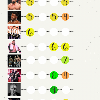 Note: Not all personalities who appear will be scored i.e. wrestlers in backstage promos or interviews, jobbers. Wrestlers who feature in matches but are not part of AEW’s roster will be scored but will not feature in the Form Table.